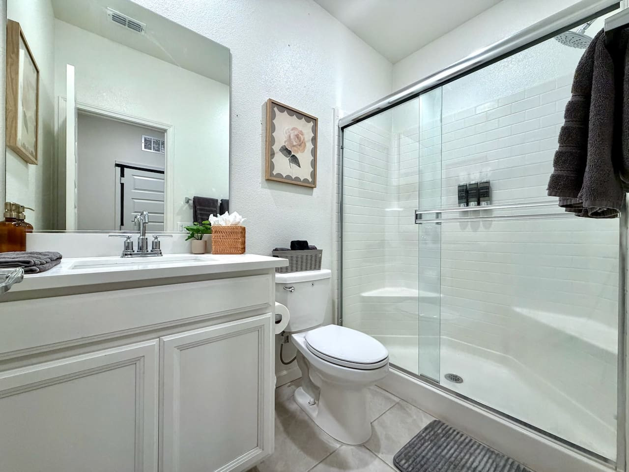 Brand new single-story 4BR/3BA in quiet South Sacramento cul-de-sac across from Florin Creek Park. 1,804 sqft, quartz counters, Samsung appliances, fiberwood flooring. King + 3 queens. 7,200 sqft lot with fruit trees, BBQ, outdoor seating. Washer/dry...