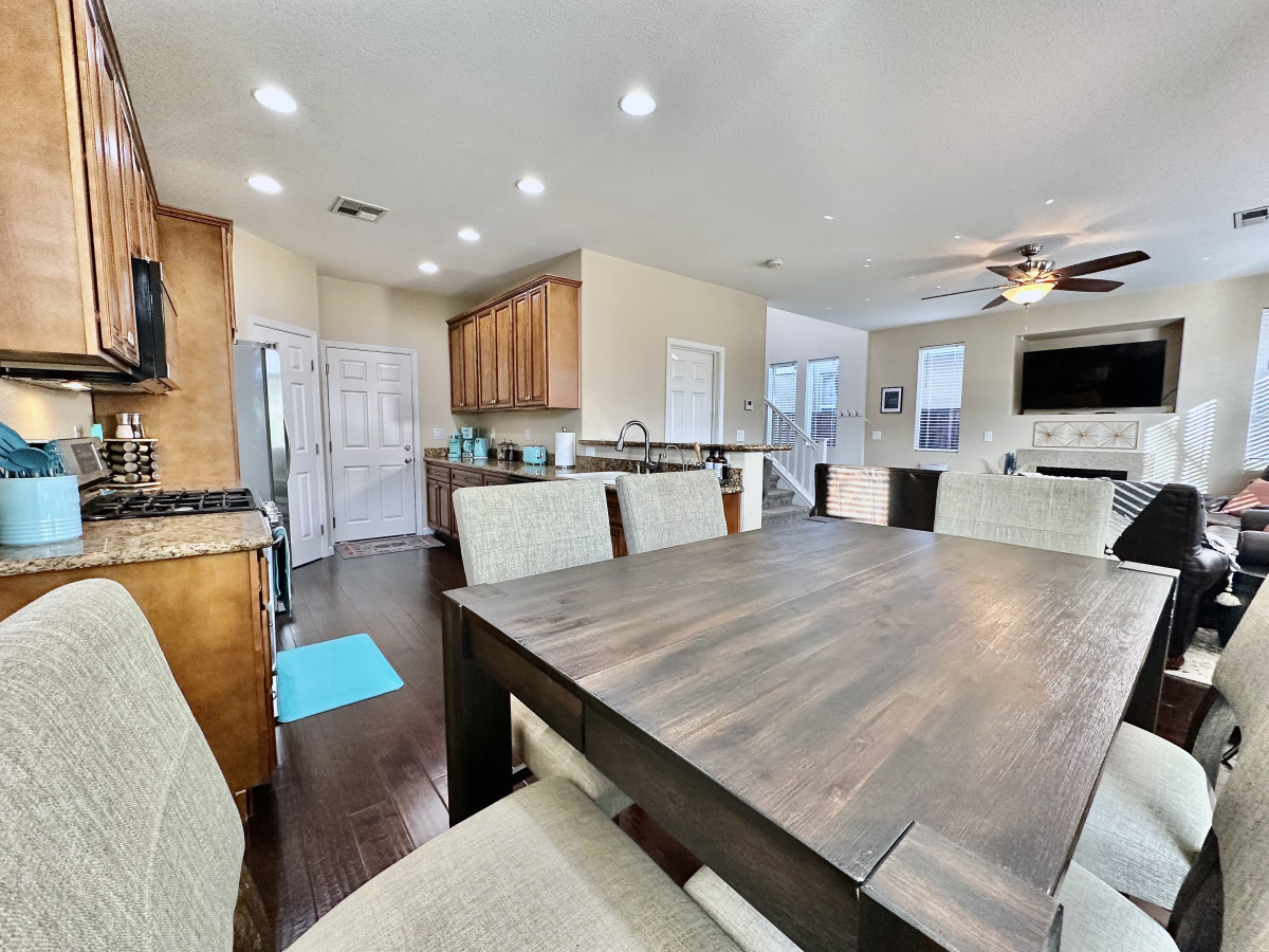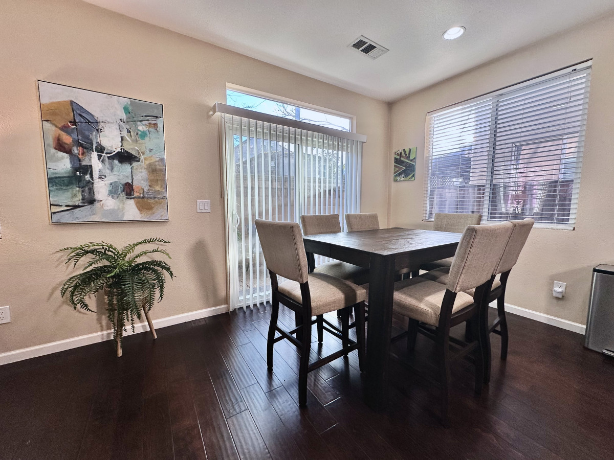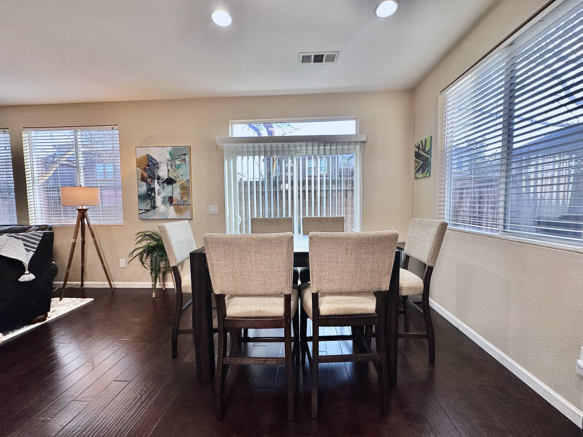 Single-story 4BR/3BA with private pool in Carmichael. King + 3 queens, fenced yard, garage, full kitchen, Smart TV, WiFi. Pool unheated. Pet-friendly. 20 min to Sacramento. Sleeps 8.