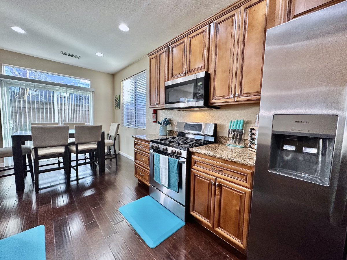 Built 2021. Modern 3BR/2BA in Rocklin. Granite counters, gas range, farmhouse sink, stainless appliances, breakfast bar. King + 2 queens. Smart TV, WiFi, AC, detached garage. Near Roseville and Granite Bay. Pet-friendly. 25 min to Sacramento. 24/7 su...