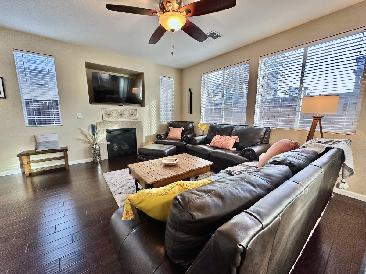 Spacious single-story 3BR/2BA in Rancho Cordova. King master with walk-in closet, 2 queens, granite island kitchen, fireplace, Smart TV. Covered patio with water feature, fenced yard, BBQ, garage parking. Pet-friendly. 20 min to Sacramento. 24/7 supp...