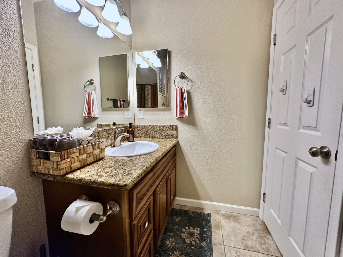 Charming mid-century modern home in a quiet West Sacramento neighborhood, just 5 minutes from downtown Sacramento. Upstairs: King bed with en-suite bathroom. Downstairs: 2 queen bedrooms with shared full bathroom. Fully stocked kitchen open to famil...