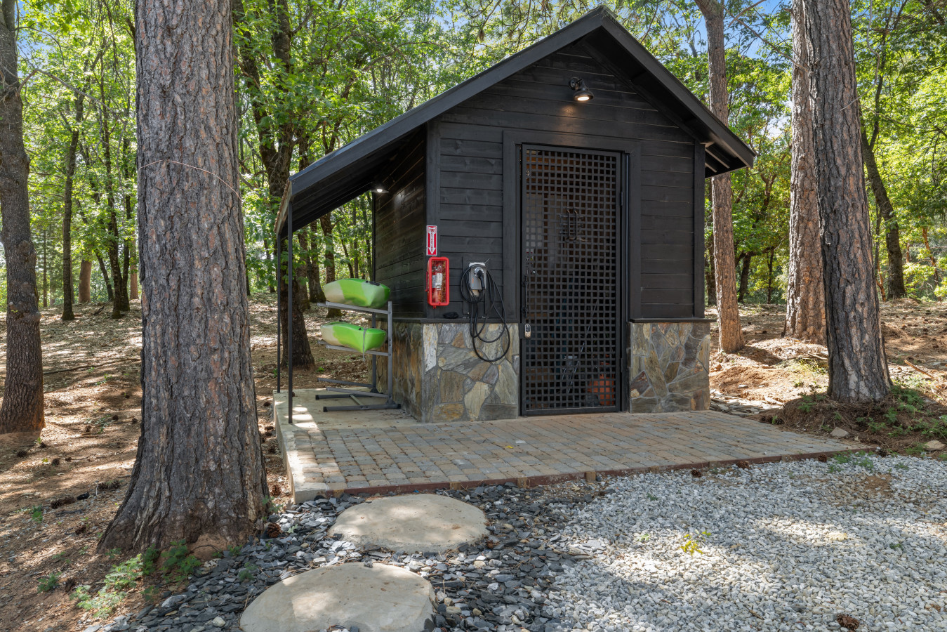 Modern container home on 20 acres. 2BR/1BA, kitchenette, WiFi, EV charger. Near Apple Hill and Placerville. Pet-friendly. Sleeps 4.