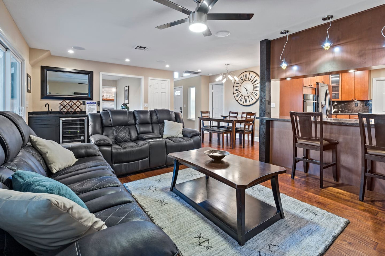 Built 2021. Modern 3BR/2BA in Rocklin. Granite counters, gas range, farmhouse sink, stainless appliances, breakfast bar. King + 2 queens. Smart TV, WiFi, AC, detached garage. Near Roseville and Granite Bay. Pet-friendly. 25 min to Sacramento. 24/7 su...