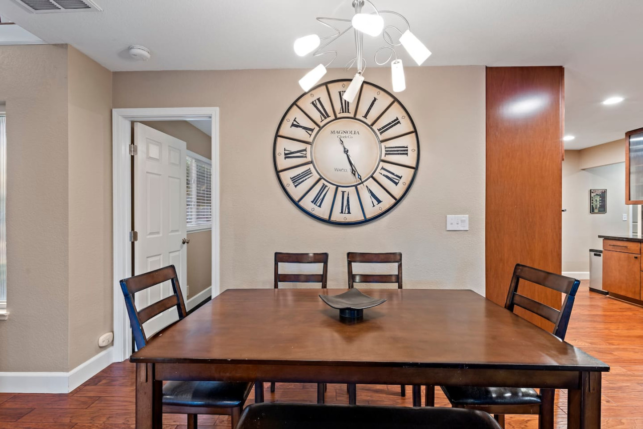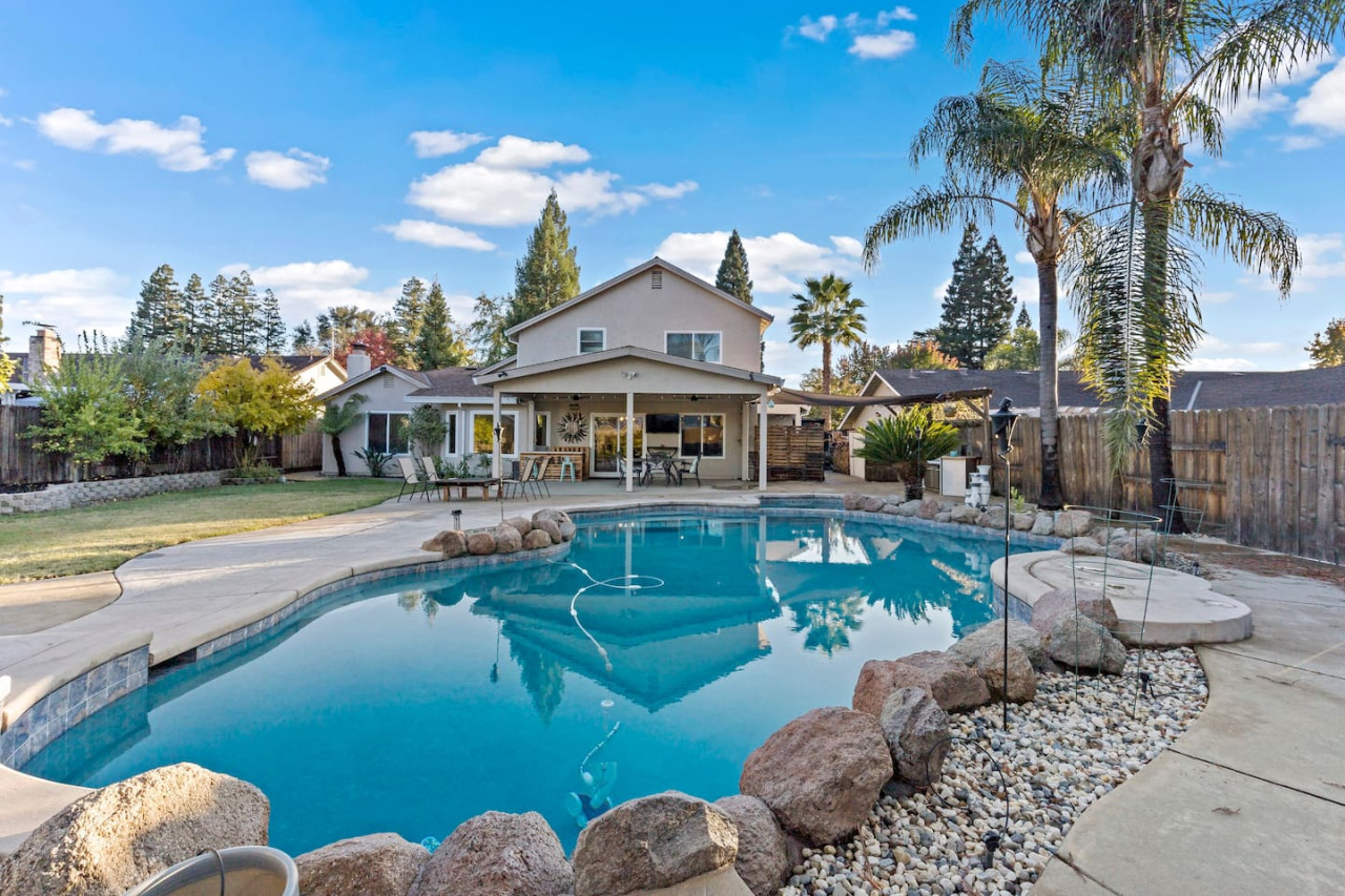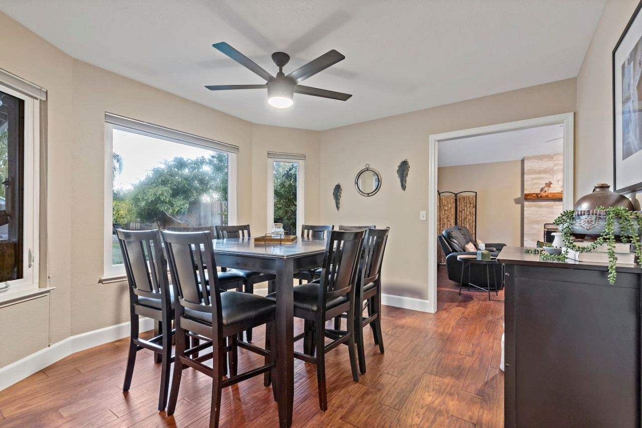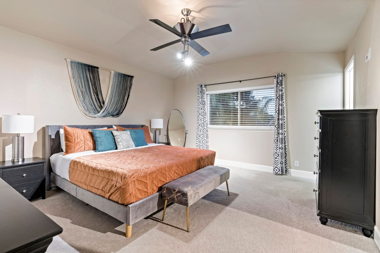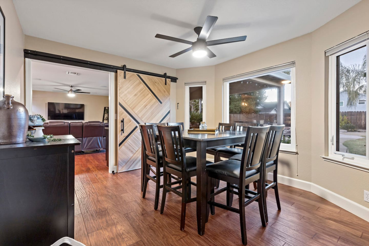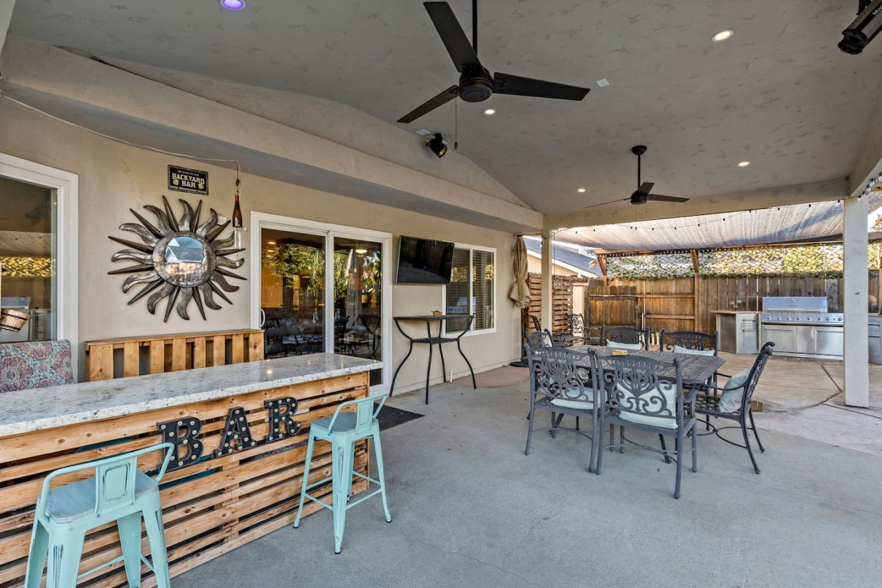 Single-story 4BR/3BA with private pool in Carmichael. King + 3 queens, fenced yard, garage, full kitchen, Smart TV, WiFi. Pool unheated. Pet-friendly. 20 min to Sacramento. Sleeps 8.
