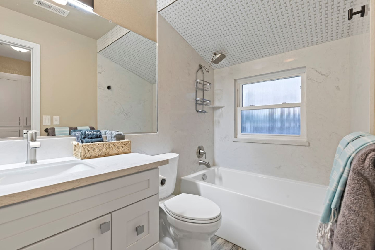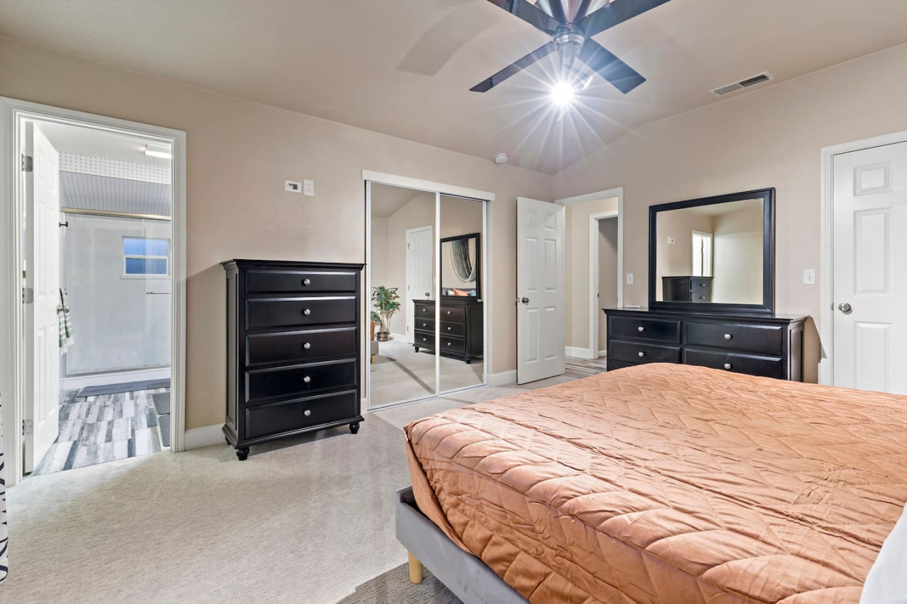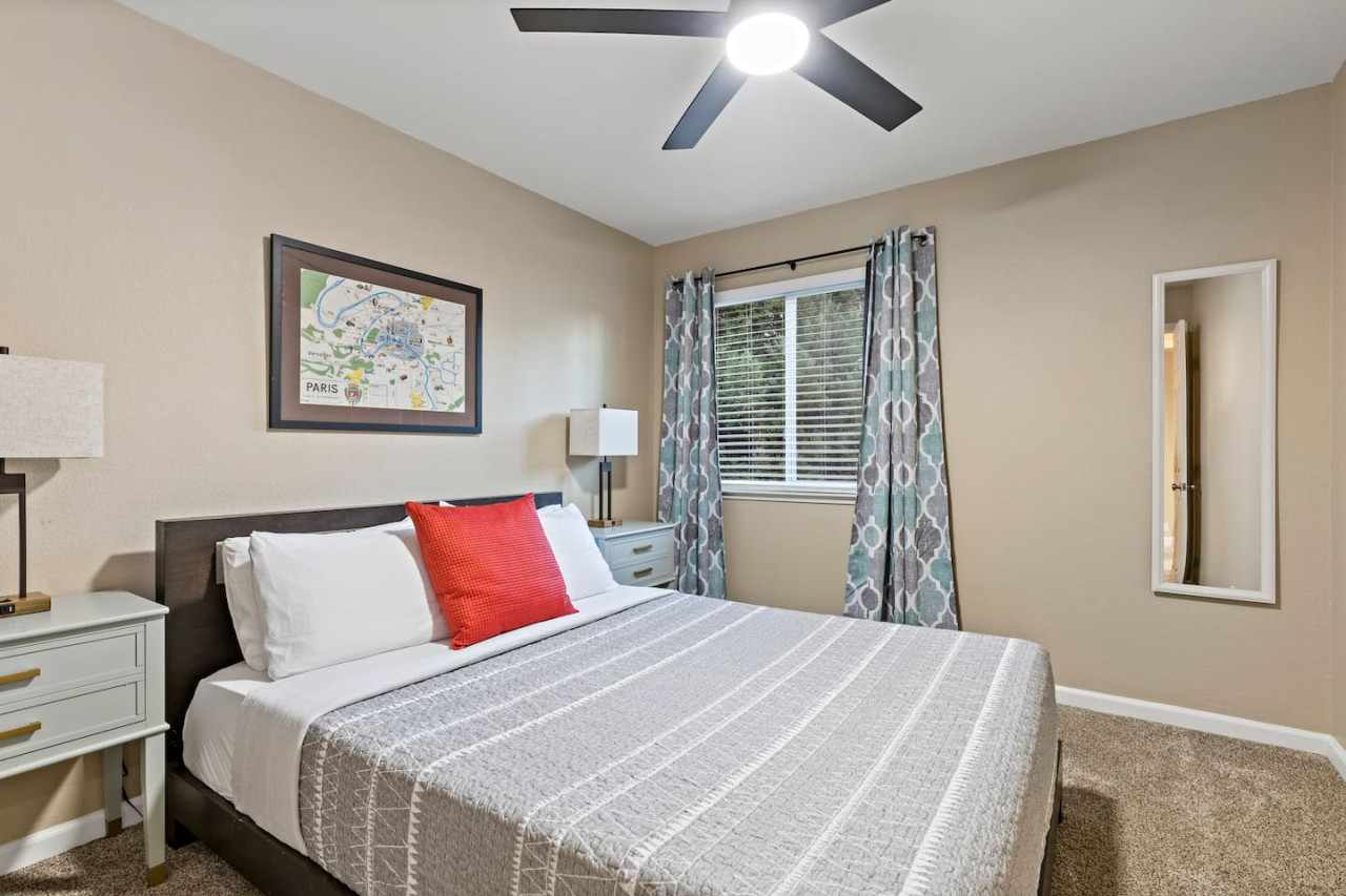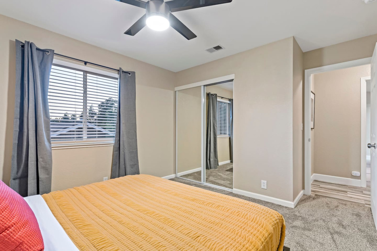 Charming mid-century modern home in a quiet West Sacramento neighborhood, just 5 minutes from downtown Sacramento. Upstairs: King bed with en-suite bathroom. Downstairs: 2 queen bedrooms with shared full bathroom. Fully stocked kitchen open to famil...