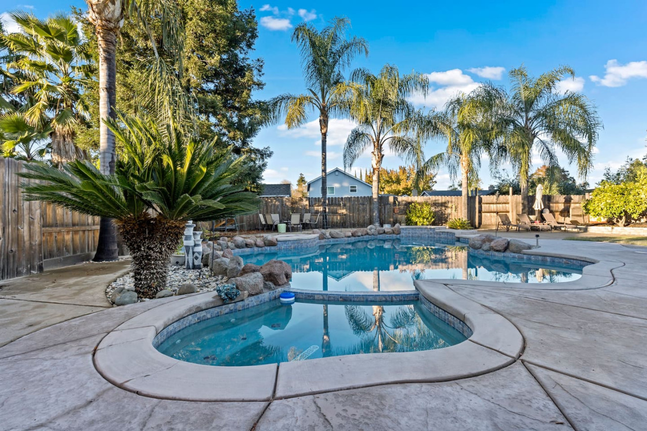 Single-story 3BR/2BA with pool, hot tub, BBQ, fenced yard in Roseville. King + 2 queens, fireplace, garage. Near Galleria. Pet-friendly. Sleeps 6.