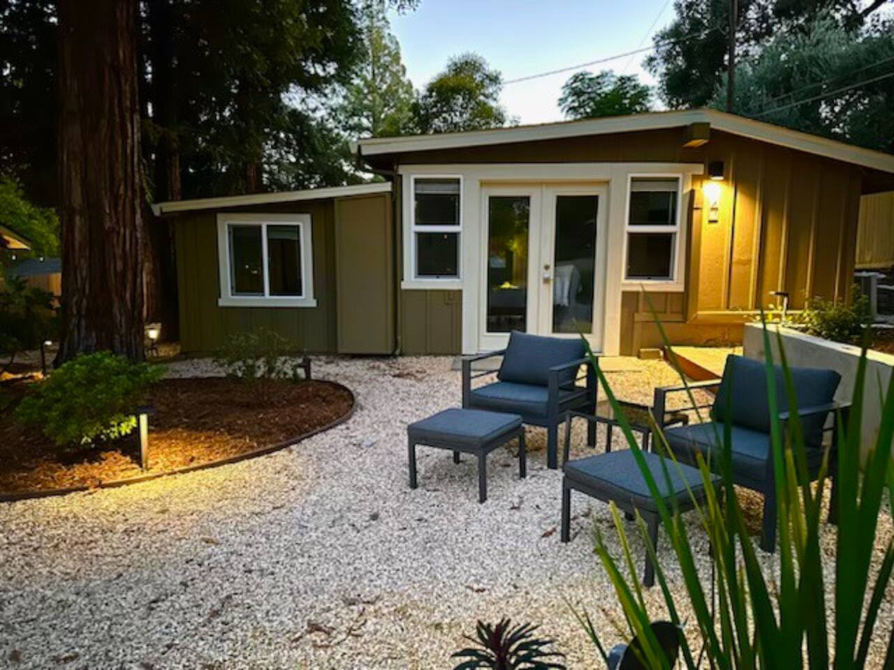 +1310-966-7446Private mid-century modern cottage in Carmichael. Cal King bed, kitchen, bathroom, walk-in closet, washer/dryer, TV. Private entrance and patio. 30-night min. Pet-friendly. 10.0 rating.