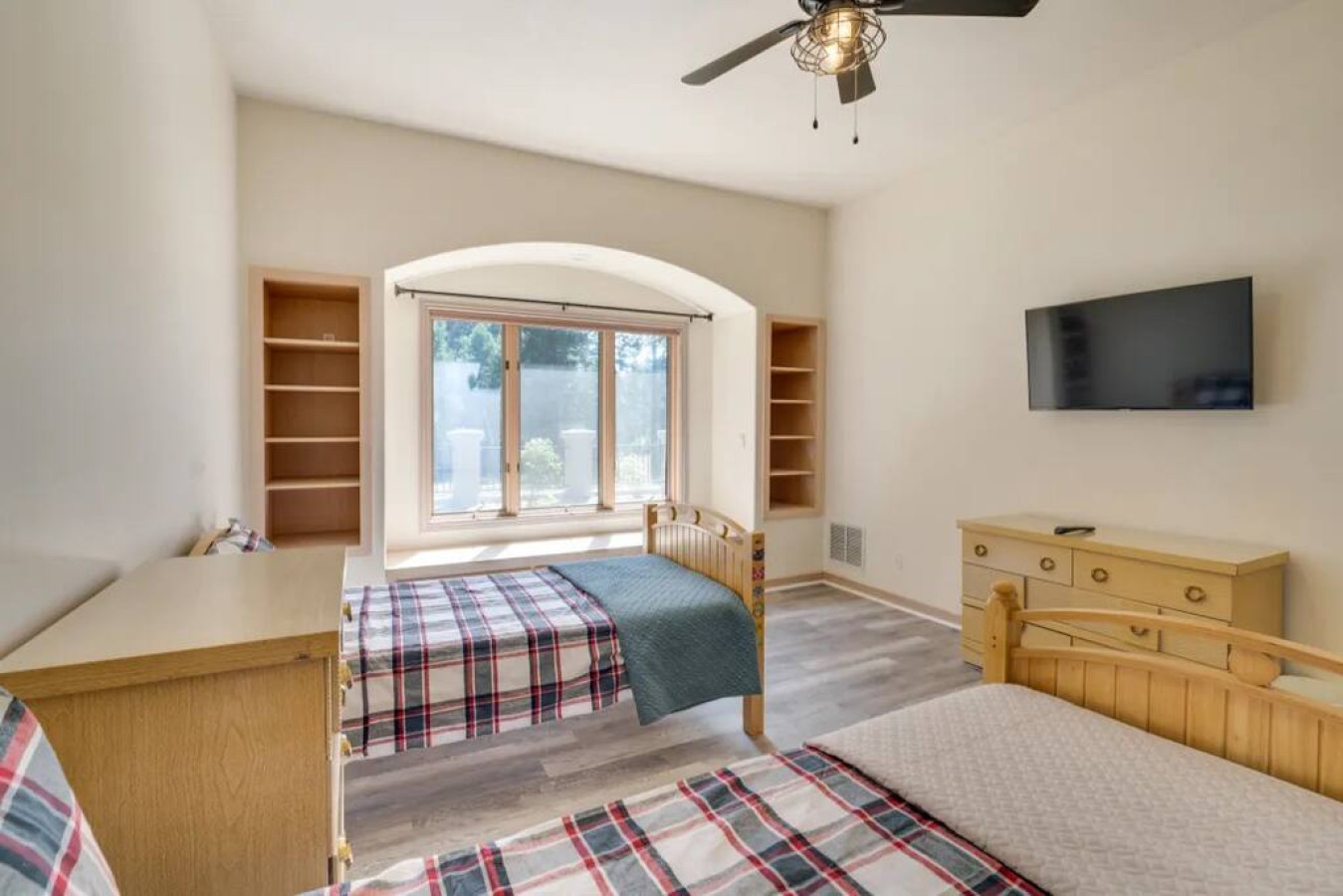 Single-story 4BR/3BA with private pool in Carmichael. King + 3 queens, fenced yard, garage, full kitchen, Smart TV, WiFi. Pool unheated. Pet-friendly. 20 min to Sacramento. Sleeps 8.
