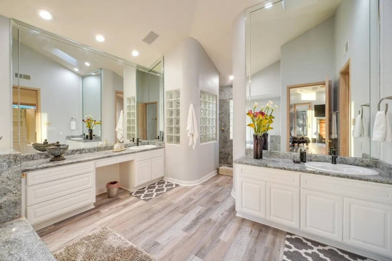 5BR/3BA with pool, hot tub, theater room, wet bar with wine fridge. 2,075 sqft, hickory hardwood, custom barn doors. King + 4 queens. Covered patio, outdoor bar, BBQ, fruit trees. RV/boat parking with full hookups. Citrus Heights. Pet-friendly. 20 mi...