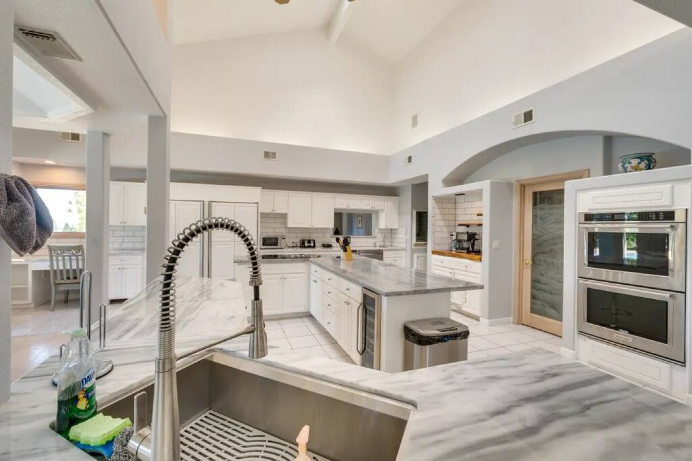 Built 2021. Modern 3BR/2BA in Rocklin. Granite counters, gas range, farmhouse sink, stainless appliances, breakfast bar. King + 2 queens. Smart TV, WiFi, AC, detached garage. Near Roseville and Granite Bay. Pet-friendly. 25 min to Sacramento. 24/7 su...
