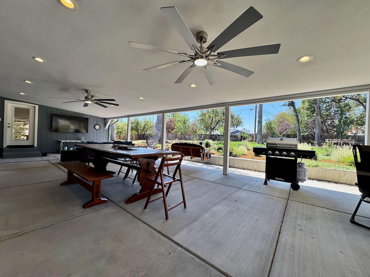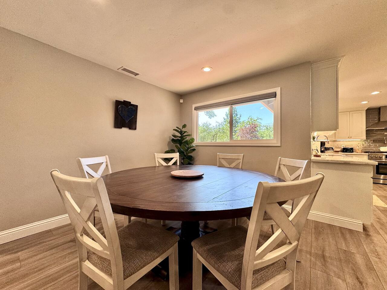 Single-story 4BR/3BA with private pool in Carmichael. King + 3 queens, fenced yard, garage, full kitchen, Smart TV, WiFi. Pool unheated. Pet-friendly. 20 min to Sacramento. Sleeps 8.