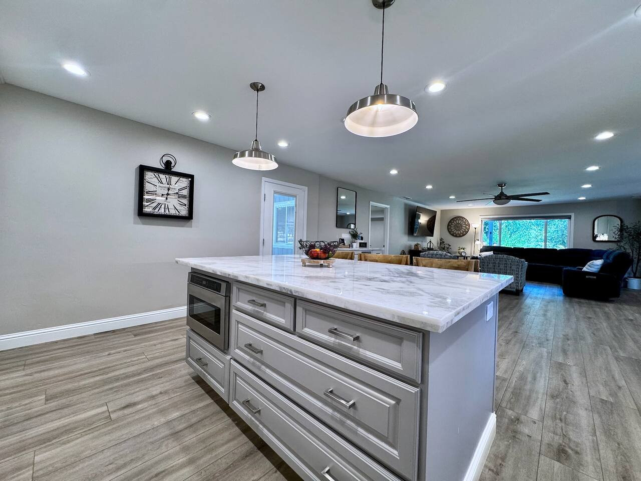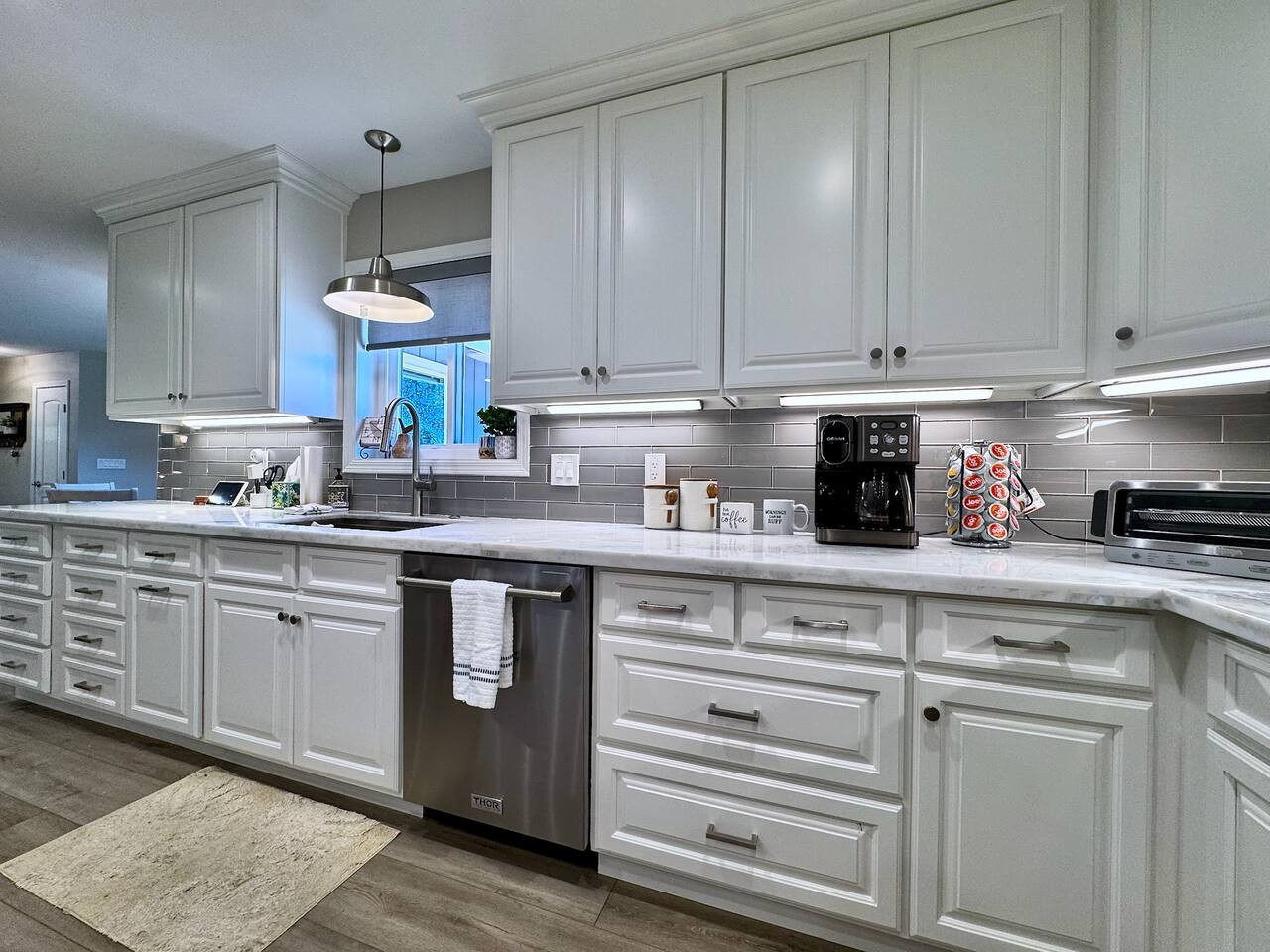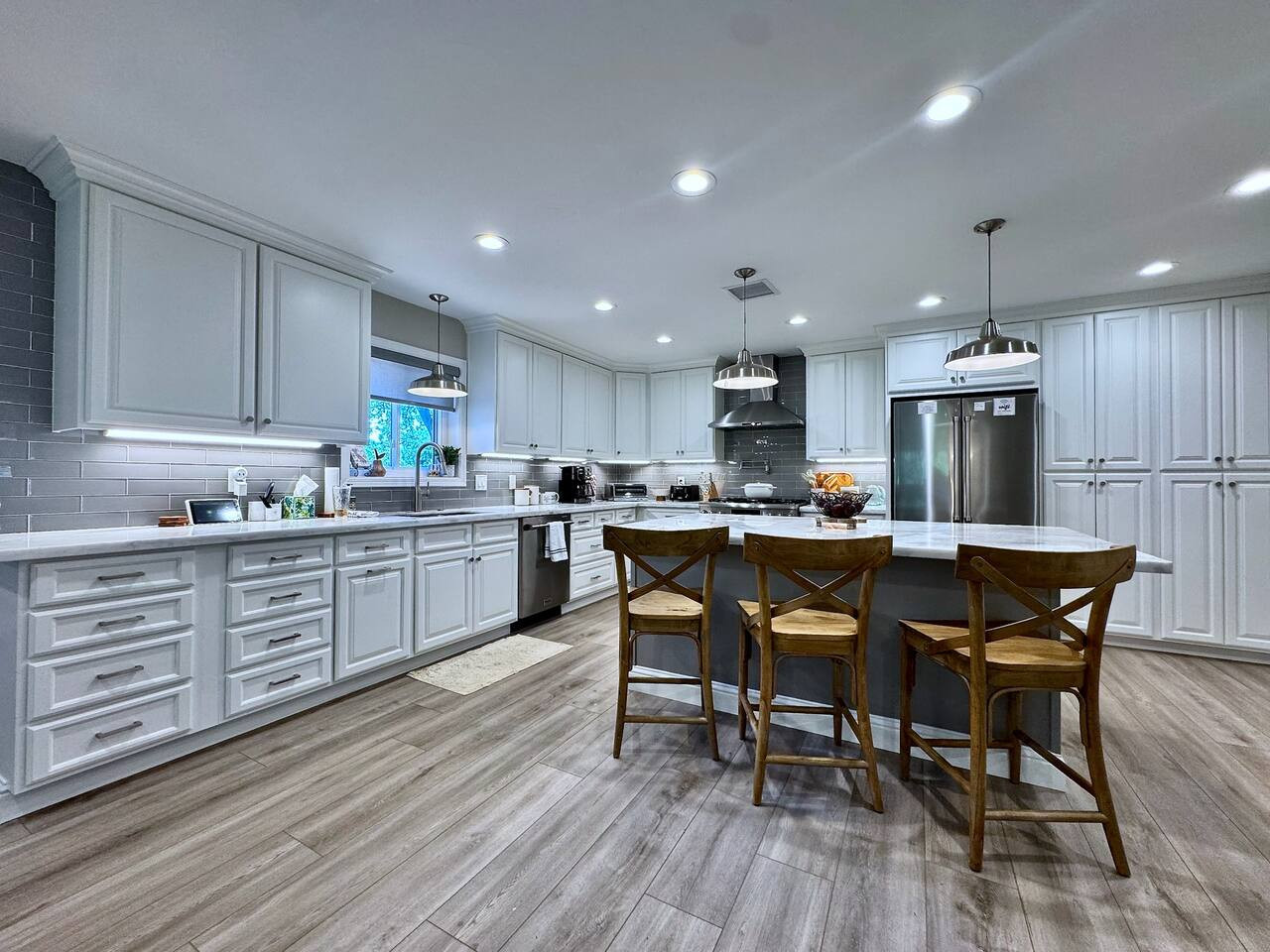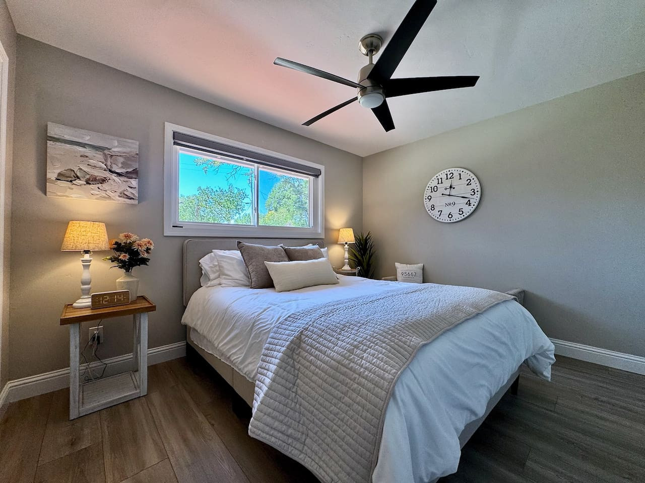 Built 2021. Modern 3BR/2BA in Rocklin. Granite counters, gas range, farmhouse sink, stainless appliances, breakfast bar. King + 2 queens. Smart TV, WiFi, AC, detached garage. Near Roseville and Granite Bay. Pet-friendly. 25 min to Sacramento. 24/7 su...
