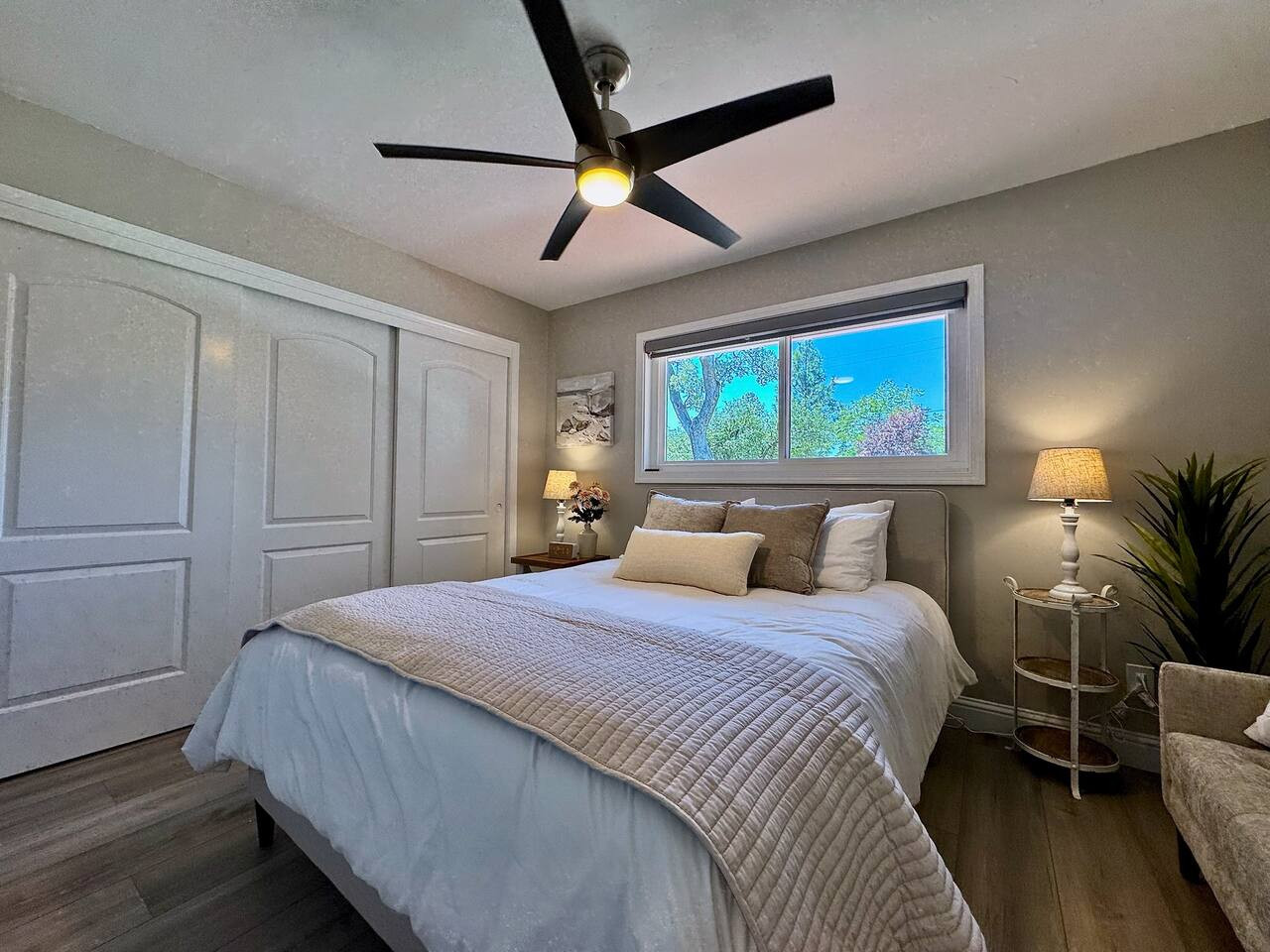 1BR/1BA attached guest suite in Woodland. Queen bed, open kitchen, bright living area. Near UC Davis and Sacramento. Pet-friendly. 10.0 rating. Sleeps 2.