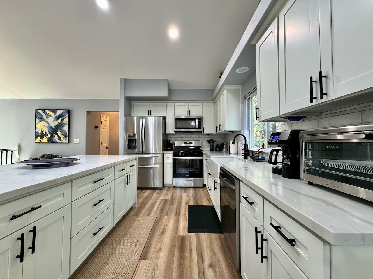 Built 2021. Modern 3BR/2BA in Rocklin. Granite counters, gas range, farmhouse sink, stainless appliances, breakfast bar. King + 2 queens. Smart TV, WiFi, AC, detached garage. Near Roseville and Granite Bay. Pet-friendly. 25 min to Sacramento. 24/7 su...