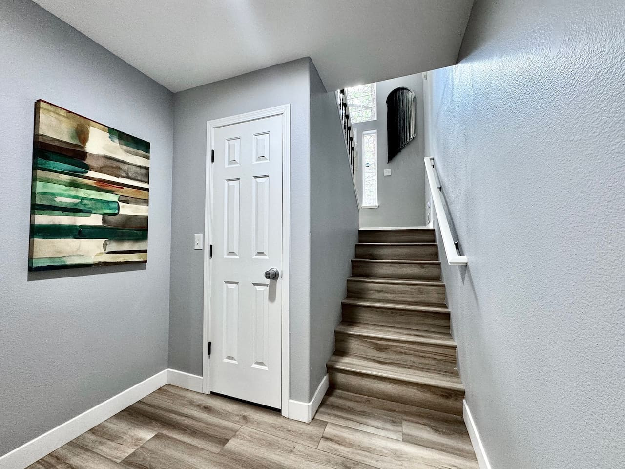 Charming mid-century modern home in a quiet West Sacramento neighborhood, just 5 minutes from downtown Sacramento. Upstairs: King bed with en-suite bathroom. Downstairs: 2 queen bedrooms with shared full bathroom. Fully stocked kitchen open to famil...
