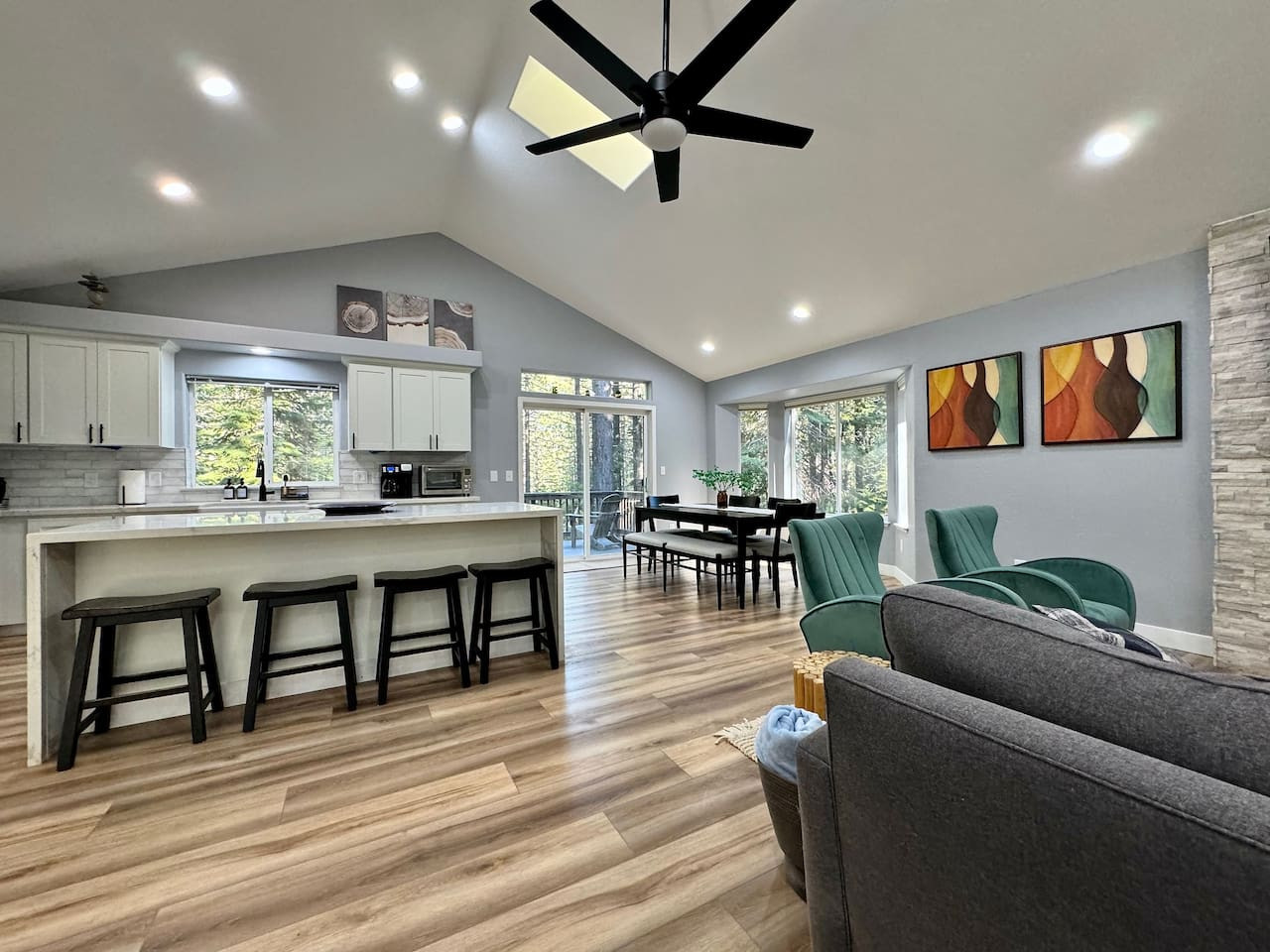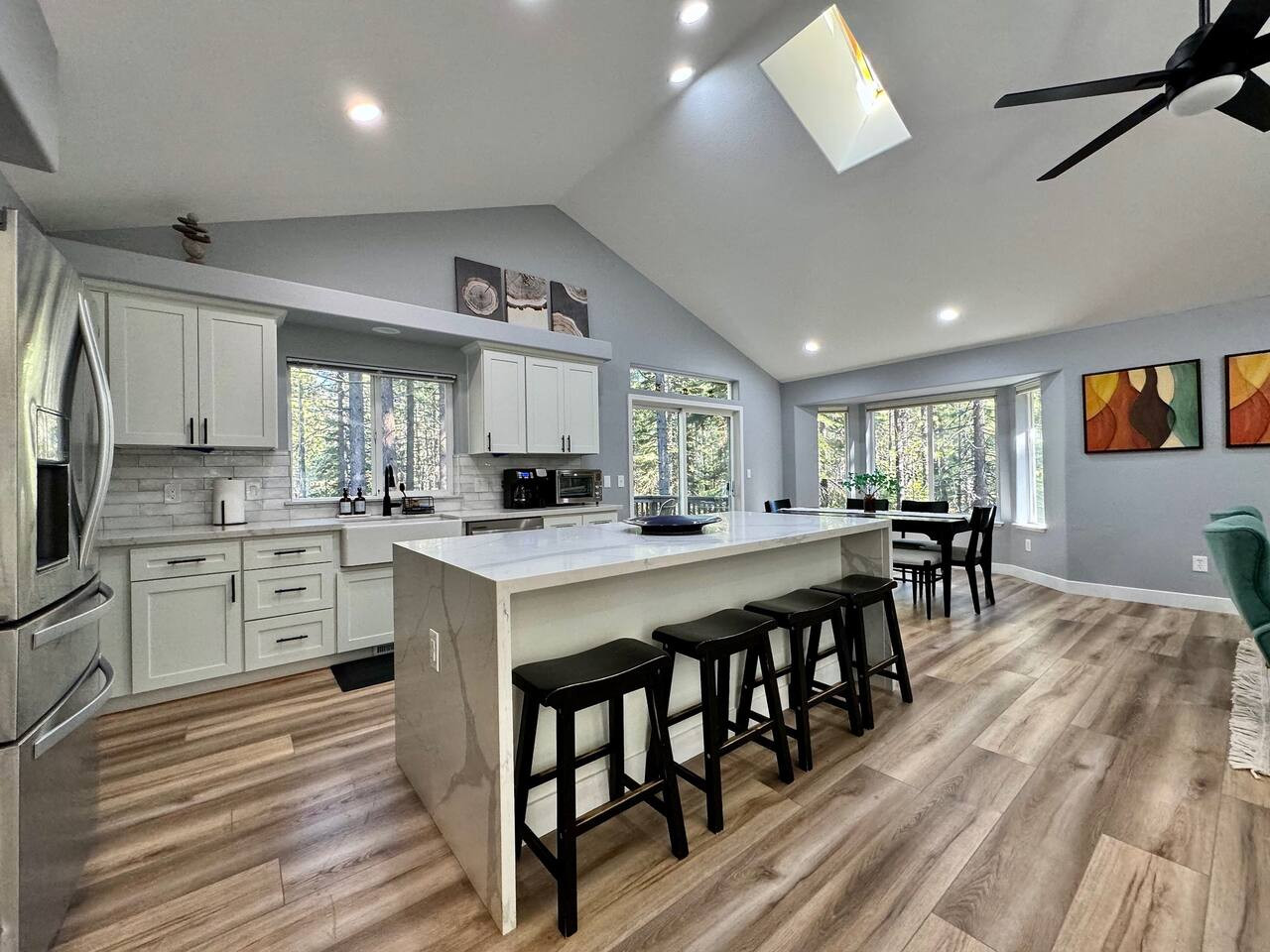 Remodeled single-story farmhouse near Placerville. 3BR/3BA, fireplace, open kitchen, fenced yard. Near Apple Hill wineries and Redhawk Casino. Pet-friendly. 9.6 rating. Sleeps 6.