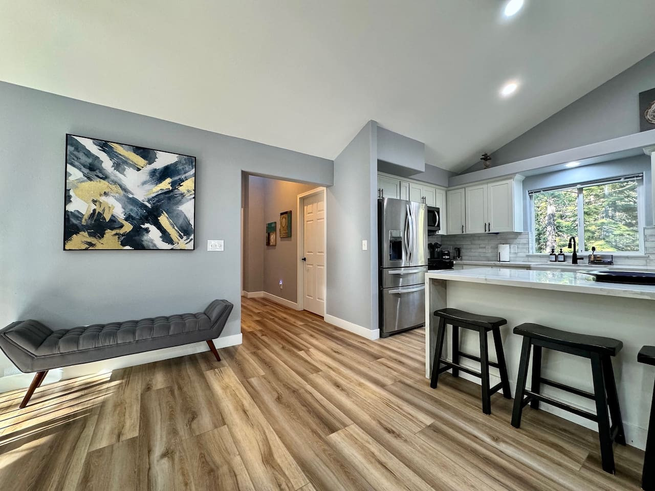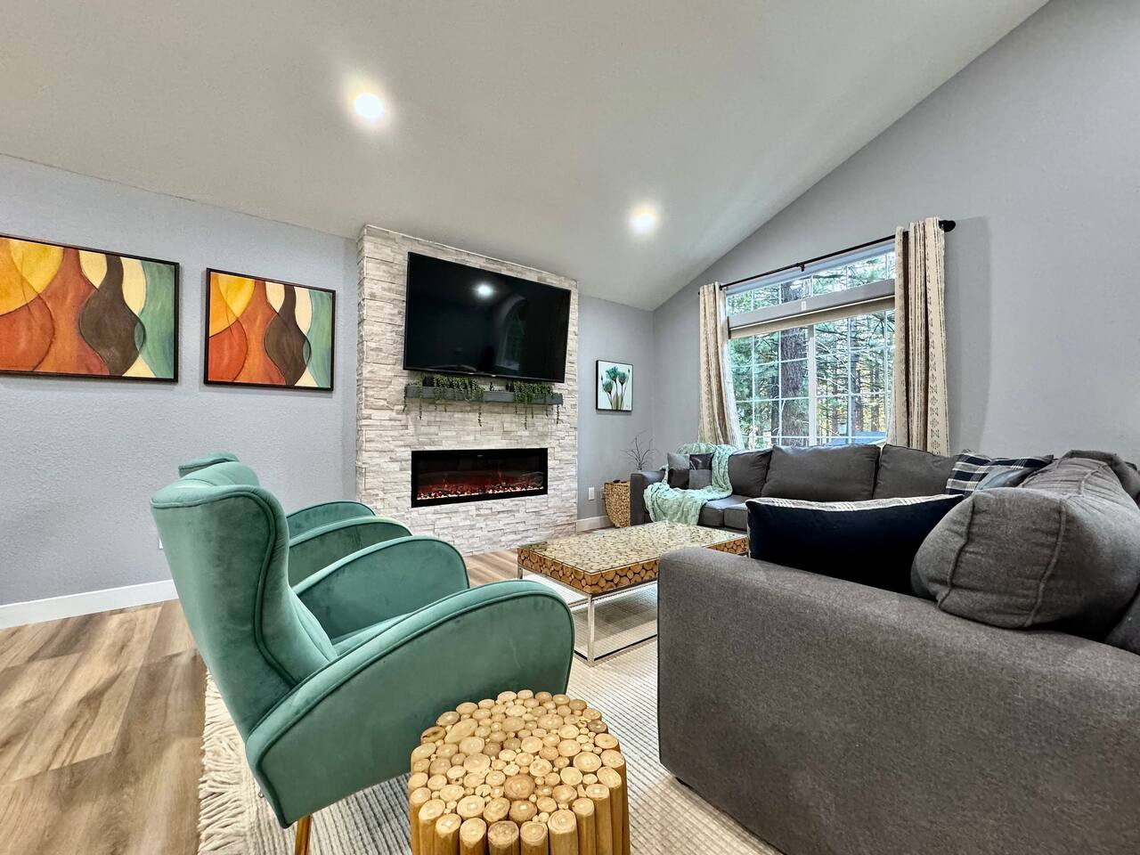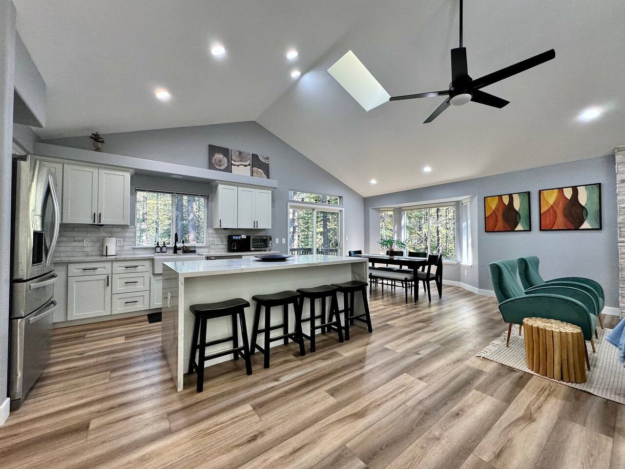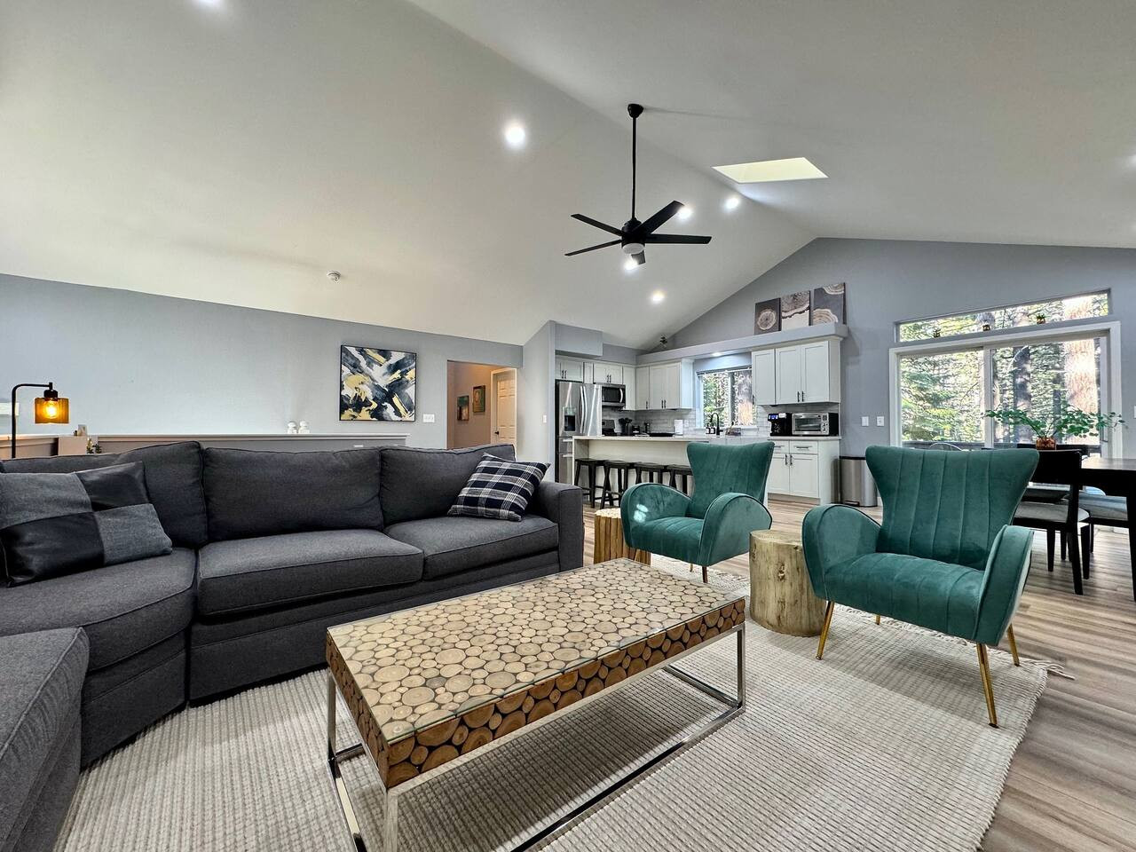 +1310-966-7446Remodeled 4BR/2.5BA in SLT. 1,970 sqft, vaulted ceilings, fireplace, new HVAC. Near Heavenly and beaches. 31-night min. Pet-friendly. Sleeps 9.