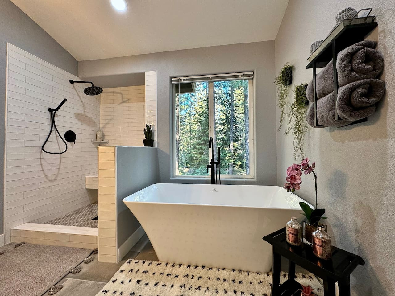 Custom 3BR/3.5BA on 2.5 acres bordering National Forest. 3 stories, hot tub, waterfall, fire pit, EV charger, deck views. Near Apple Hill and Placerville. Pet-friendly. 9.8 rating. Sleeps 6. Explore the home with our interactive 3D tour: https://my....