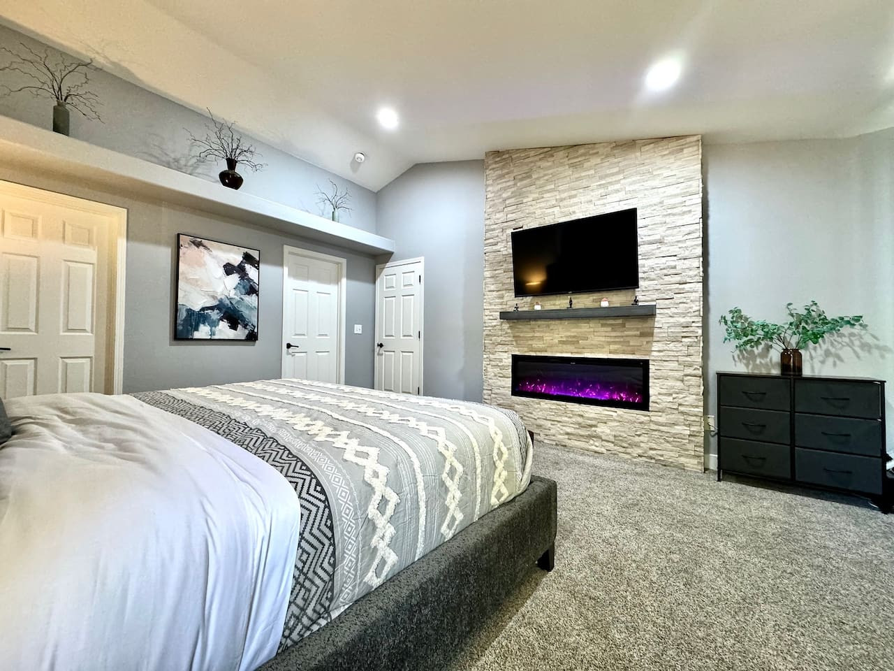 Spacious single-story 3BR/2BA in Rancho Cordova. King master with walk-in closet, 2 queens, granite island kitchen, fireplace, Smart TV. Covered patio with water feature, fenced yard, BBQ, garage parking. Pet-friendly. 20 min to Sacramento. 24/7 supp...