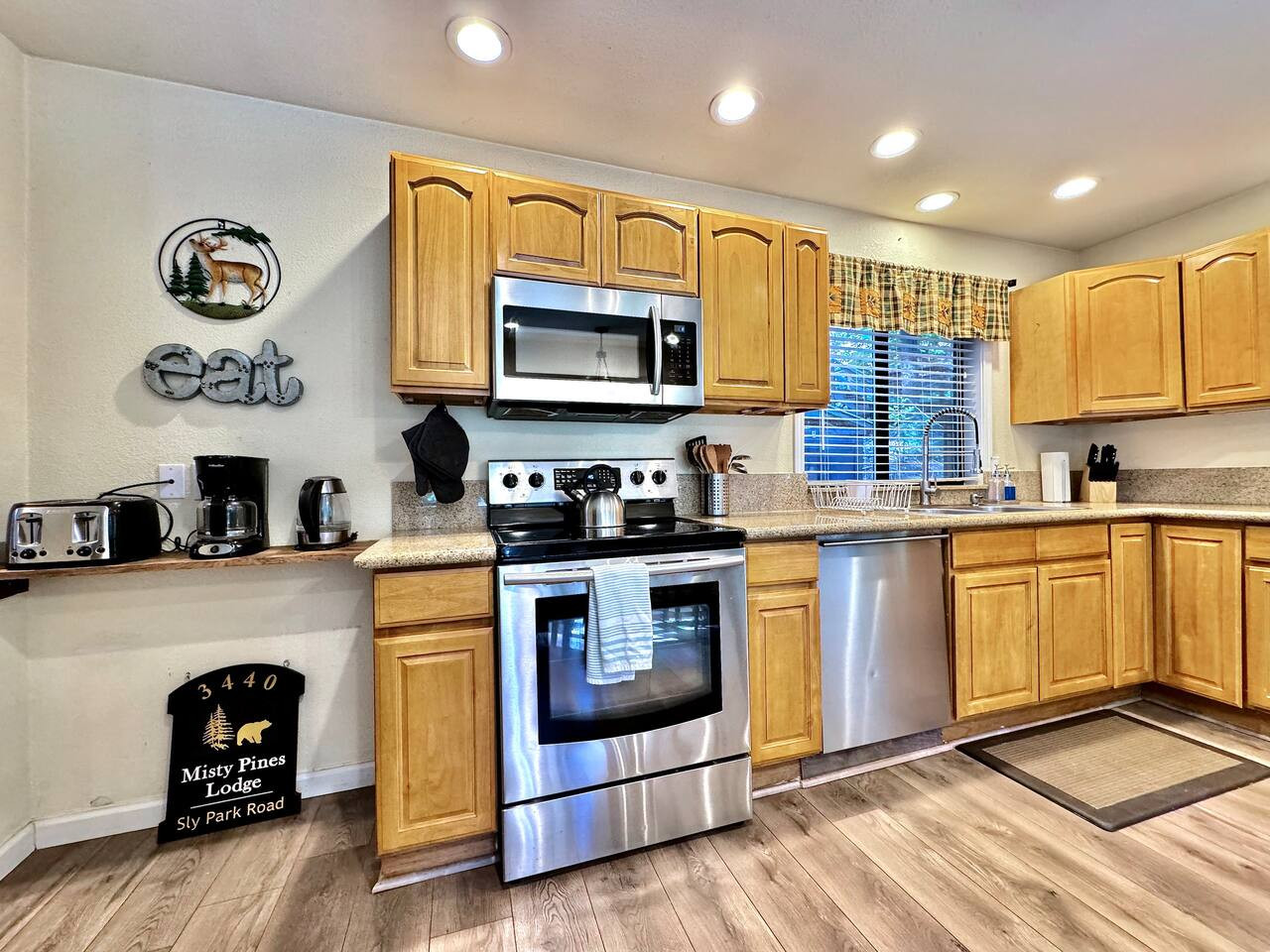 Welcome to our beautifully updated and stylishly decorated home, ideally situated right off Highway 50 and Pioneer Trail in South Lake Tahoe. This home offers a perfect blend of modern comfort and serene natural surroundings, making it an ideal retre...