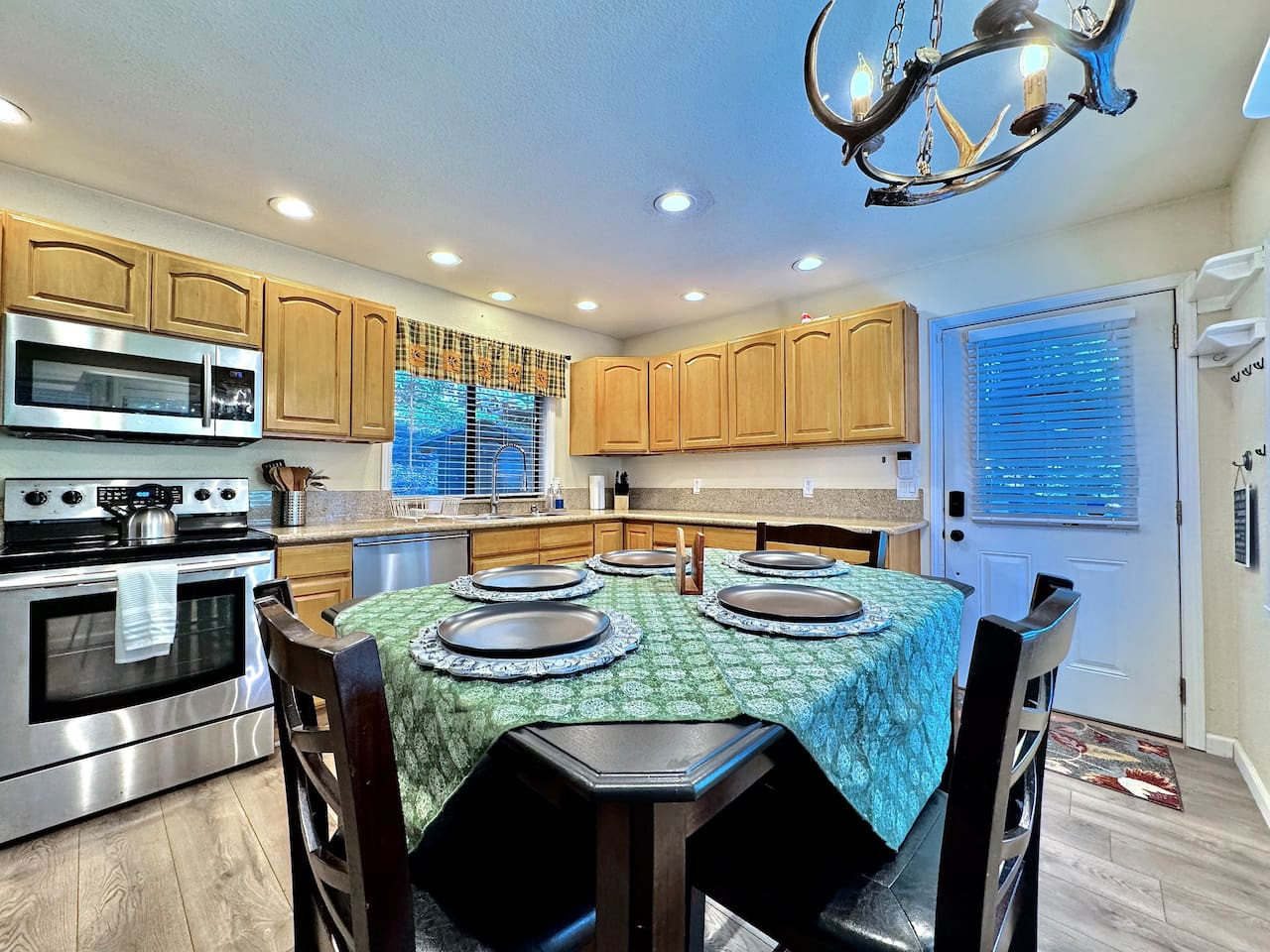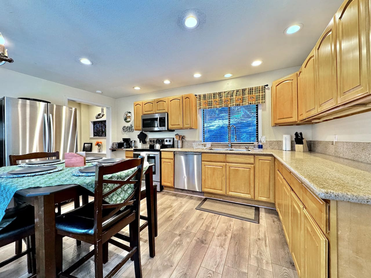 +1310-966-7446Nestled amidst the picturesque beauty of Pollock Pines, our serene retreat offers a perfect blend of relaxation and adventure. This spacious 2-bedroom and one-bathroom home is an ideal escape for families, couples, or a group of friends seeking solace in nature's embrace. Please note: do not pull into the driveway in the winter if you do not have 4wd. Interior Features: Discover a sense of openness with a cathedral ceiling, complemented by a unique wet bar and an inviting skylight tube that bathes the space in natural light. Laundry Features: For your convenience, find a well-appointed laundry area with cabinets and a stacked unit, all discreetly placed inside the home. Outdoor Living: Step outside onto the uncovered deck, where you can soak up the sun or enjoy al fresco dining in a serene setting. You can enjoy the custom made outdoor covered bar area! Pet-Friendly: We understand that pets are part of the family. Cats and dogs are welcome here, with a reasonable limit for your furry companions. Windows: The home is equipped with dual pane windows, providing energy efficiency and keeping the space comfortably insulated. Single-Story Convenience: This one-story dwelling offers easy access and a seamless flow throughout the space, although there are steps from the driveway and parking lot. Experience the comfort and convenience of this inviting retreat, complete with unique features that make it feel like a true home away from home. Book your stay now and create lasting memories in this special space. Guests have full access to the home, parking, and outdoor bar. We are based in Sacramento, and our dedicated cleaning crew resides in Pollock Pines. You can reach out to us through Airbnb messaging, which we monitor 24/7. Alternatively, feel free to give us a call or text. In the rare event of an emergency, we have both cleaning and maintenance teams on standby to assist you promptly." This property is located in a quiet, wooded area, surrounded by towering pines and oaks, providing a sense of privacy and tranquility. The neighborhood is perfect for those who enjoy outdoor activities, as it is just minutes from the stunning Sly Park Recreation Area and Jenkinson Lake. Here visitors can hike, fish, kayak, or simply relax along the lake's picturesque shores. Pollock Pines is a friendly and welcoming community with a small-town feel. Local amenities include grocery stores, cafes, and family-owned restaurants, all within a short drive. The property is conveniently located near Highway 50, offering easy access to Placerville’s historic downtown, as well as South Lake Tahoe for skiing, snowboarding, and vibrant nightlife. You will need a car -Park in the top parking lot and walk down the steps if you do not have a 4-wheel drive car. In the winter, you will most likely need a 4WD to get to the home. Be careful in the winter as much of the road will be icy, and the steps may be icy as well. -We charge a one-time pet fee of $100 per pet.