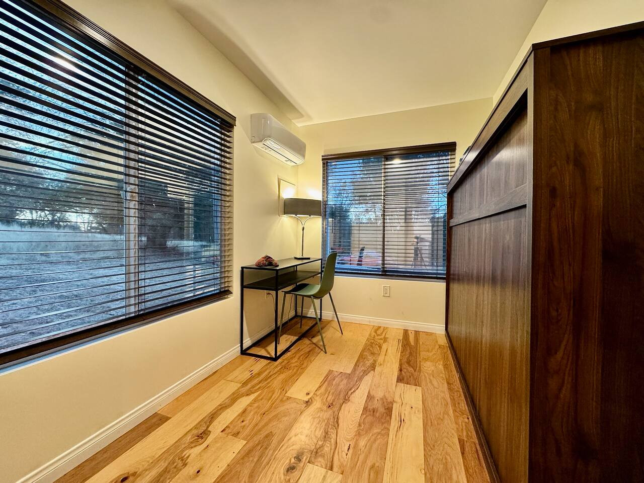 Private mid-century modern cottage in Carmichael. Cal King bed, kitchen, bathroom, walk-in closet, washer/dryer, TV. Private entrance and patio. 30-night min. Pet-friendly. 10.0 rating.