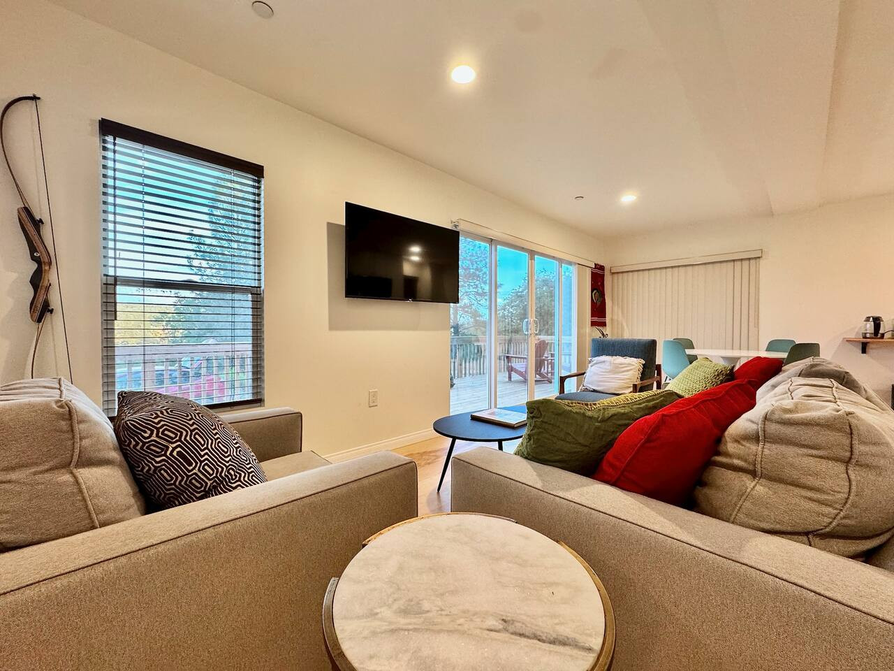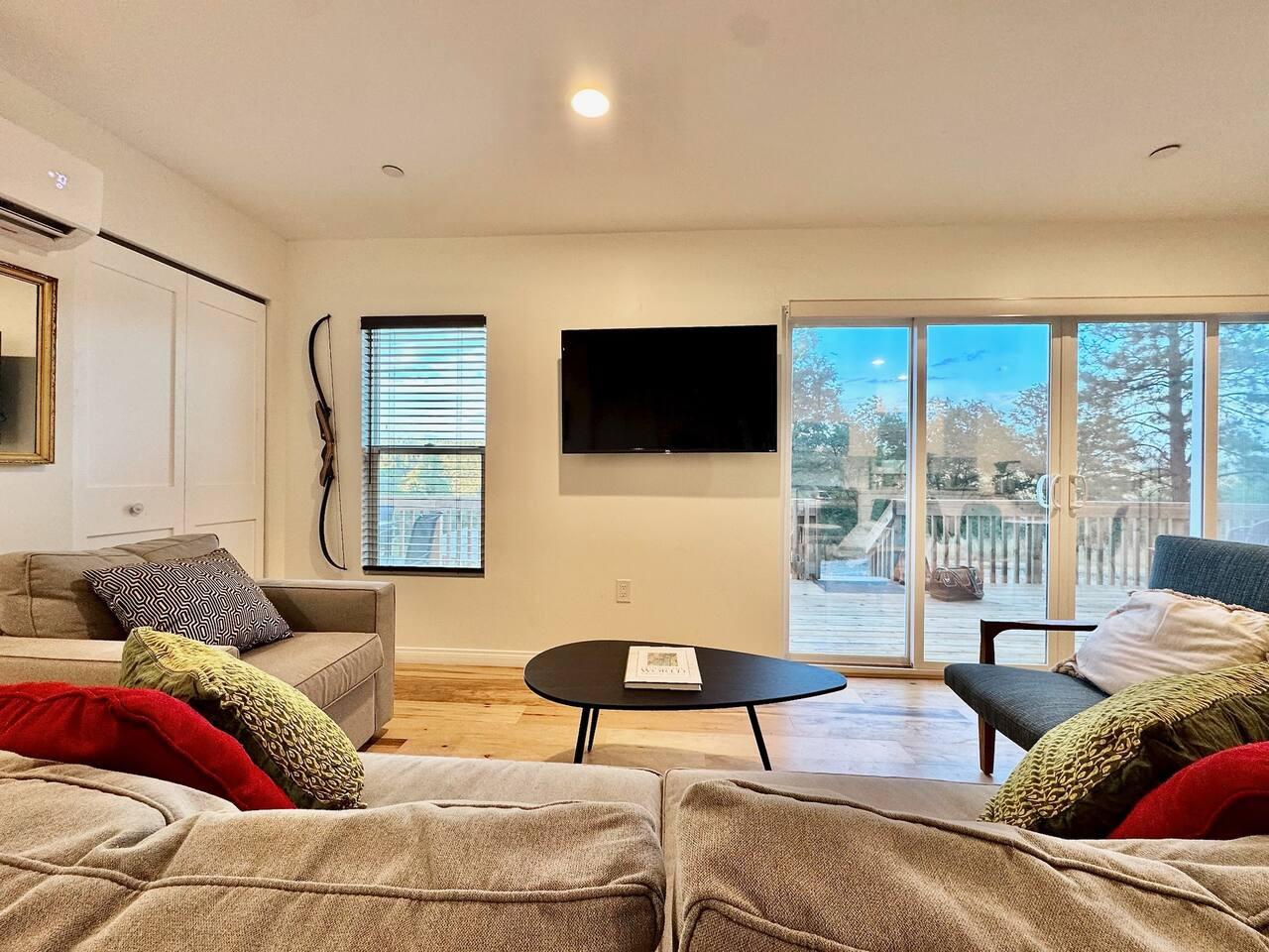 Updated 4BR/2BA in South Lake Tahoe. 2 gas fireplaces, arcade table (2,475 games), 5 Smart TVs. King master with private deck, bunk rooms for families. Granite kitchen, A/C, washer/dryer. Huge yard bordered by USFS land. Two decks, BBQ. 10 min to Hea...